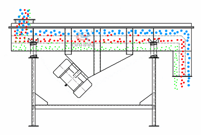 上振式直線振動篩工作原理:
