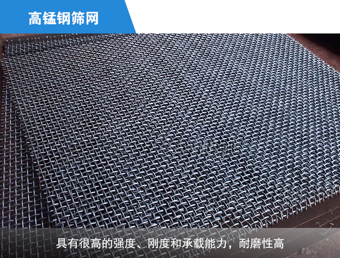 ③高錳鋼振動篩篩網采用錳鋼網絲徑為1.6mm-12mm絲線編織而成的篩網,具有很高的強度、剛度和承載能力,在受強烈沖擊、摩擦時,表面因塑性變形而產生強大的加工硬化,從而獲得較高的耐磨性,而內部仍保持較高的塑性和韌性。當舊的表面磨損后,新的表面又會形成耐磨層,因此壽命可達到普通振動篩篩網的4—8倍,多用于諸如大型礦山類的大比重、大顆粒、大產量的行業。