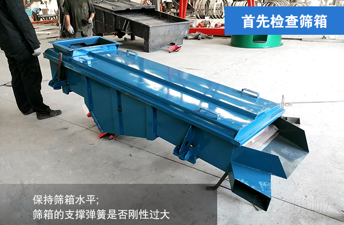 ①篩箱的安裝是否保持同水平面橫向水平,若篩箱的橫向水平沒有達到平衡會使篩面產生定程度的偏移,物料則無法進行直線流動;這需要對直線振動篩的橫向水平面進行調整,保持篩箱水平;